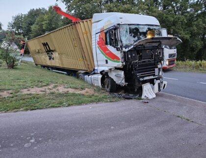 Camion porte conteneur au fossé