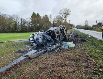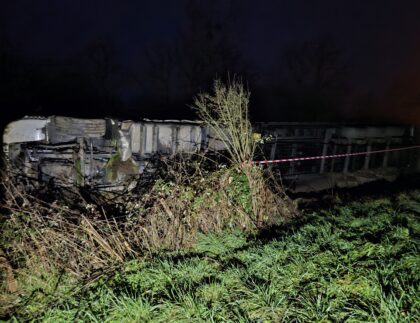 Benne entièrement chargée de déchets industriels renversée à la sortie d'un rond-point. Mise en sécurité...